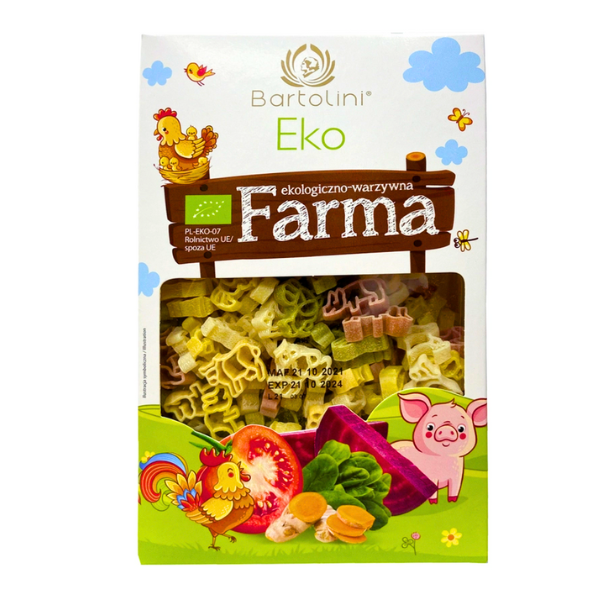 Thành phần: Bột lúa mì semolina (bột lúa mì cứng)*, rau củ theo tỷ lệ thích hợp (cà chua sấy*, rau cải bó xôi sấy*, củ dền đỏ sấy*), gia vị: nghệ*